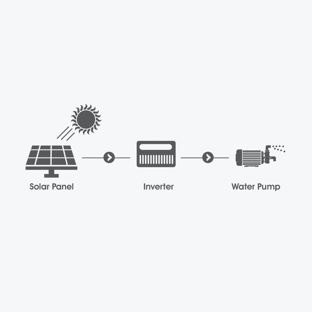 It is a common OFF-grid system that works to drive a submersible pump into a well to groove water out using the energy converted by the photo voltaic solar panels. We provide a complete solution for you to analyze your needs and design on that basis taking into consideration all the constraints for the location, capacity and your capital.